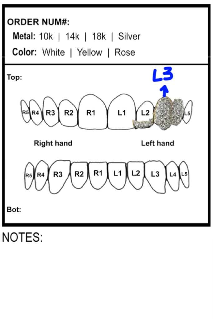 ·If we have not received good mold impressions within 60 days of your order, there may be additional charges due to any pricing changes that may have occurred since the time of your purchase. - All sales on custom-fitted grillz are final once we begin production. Upon receiving the completed custom grill, you have seven days to notify us of any fitting issues or defects. We provide one free adjustment within this period (excluding single and double caps). Additional adjustments will incur a $70 fee, which includes another mold kit sent to you with shipping and insurance.